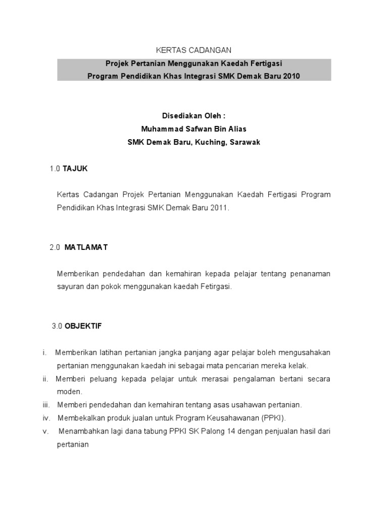 10 PENDAHULUAN Kebanyakan OKU tidak mempunyai pekerjaan dan menerima pendapatan yang minima. KERTAS KERJA PROJEK PERKEBUNAN PROGRAM PENDIDIKAN KHAS INTEGRASI TARIKH MAC - DISEMBER 2021 TEMPAT KEBUN PPKI BELAKANG BLOK A SK. Asalnya saya tidak ingin membawa kejayaan ini kepada penulisan di blog kerana bimbang tersalah tafsir dengan.